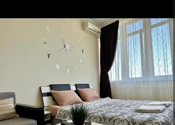 Das Apartment Видовая Квартира В Центре Кишинева in Kischinau befindet sich rund 3 Kilometer von der Statue von Ștefan cel Mare și Sfînt und ungefähr 20 Fußminuten von der Kathedrale des großen Märtyrer Teodor Tiron entfernt.